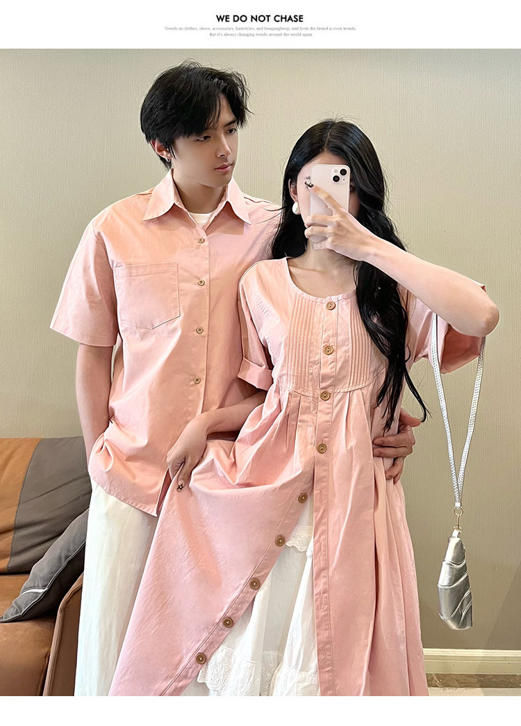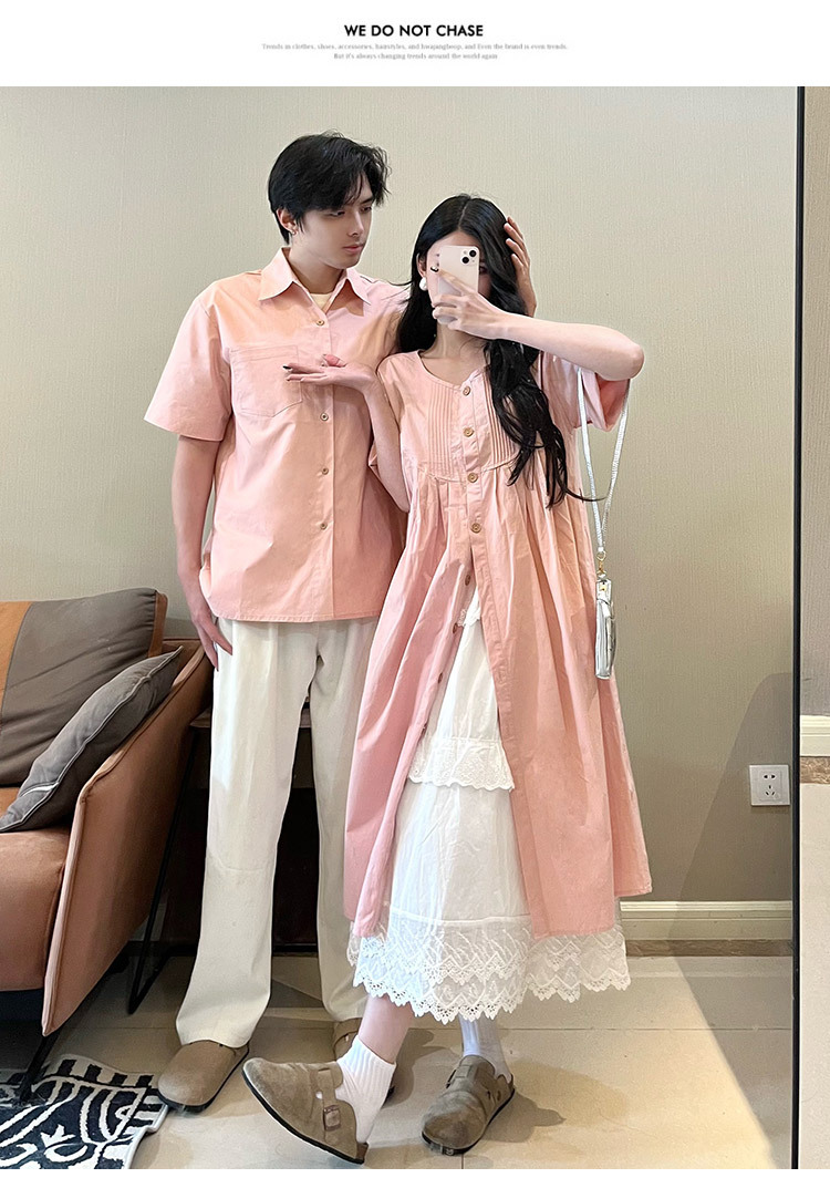 Color: Pink Men's Shirt, Pink Shirt Dress, White Lace Dress