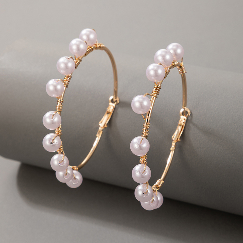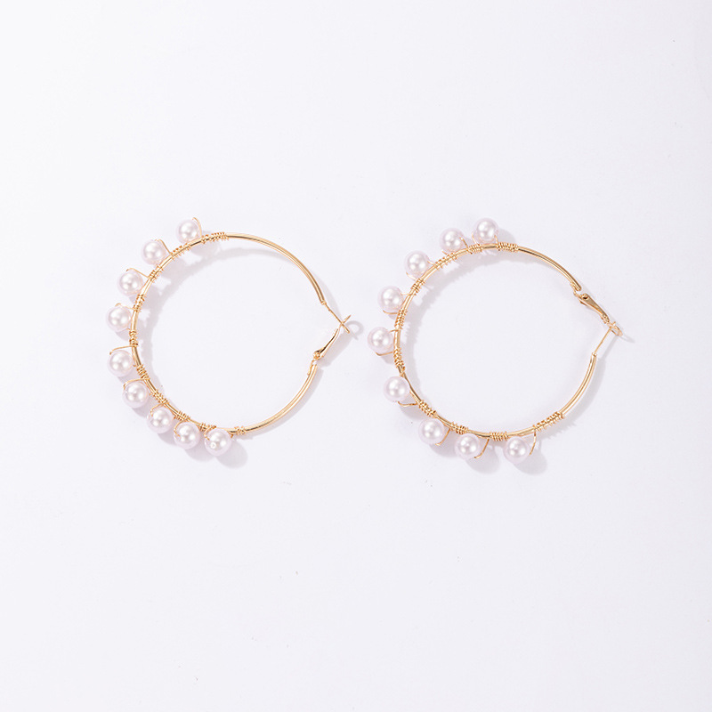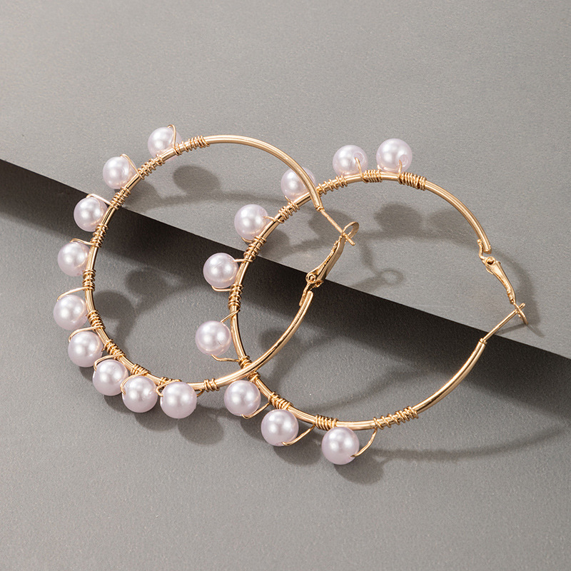 Light Luxury Fashion Earrings Pearl Inlaid Earrings Simple Geometric Earrings