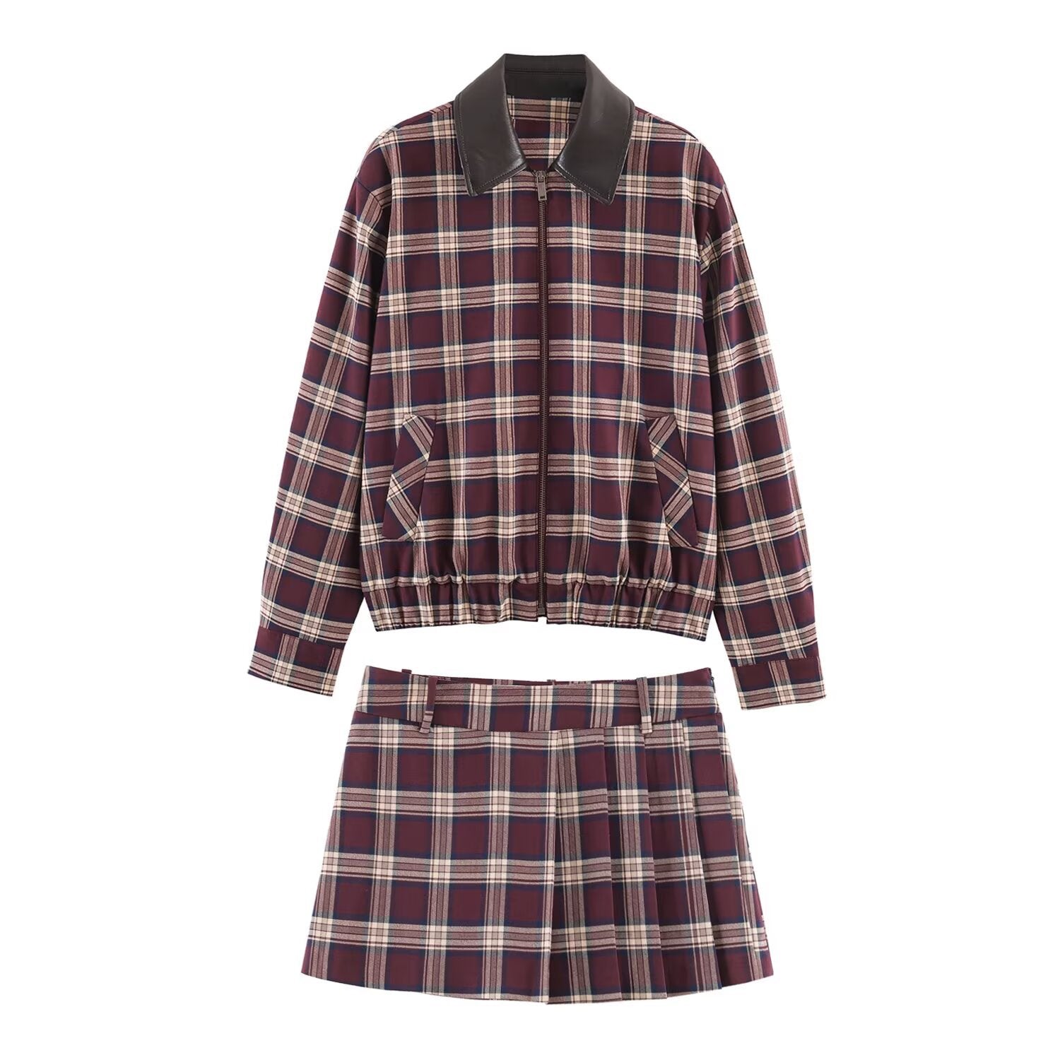 Leather pilot jacket+skirt and pants set